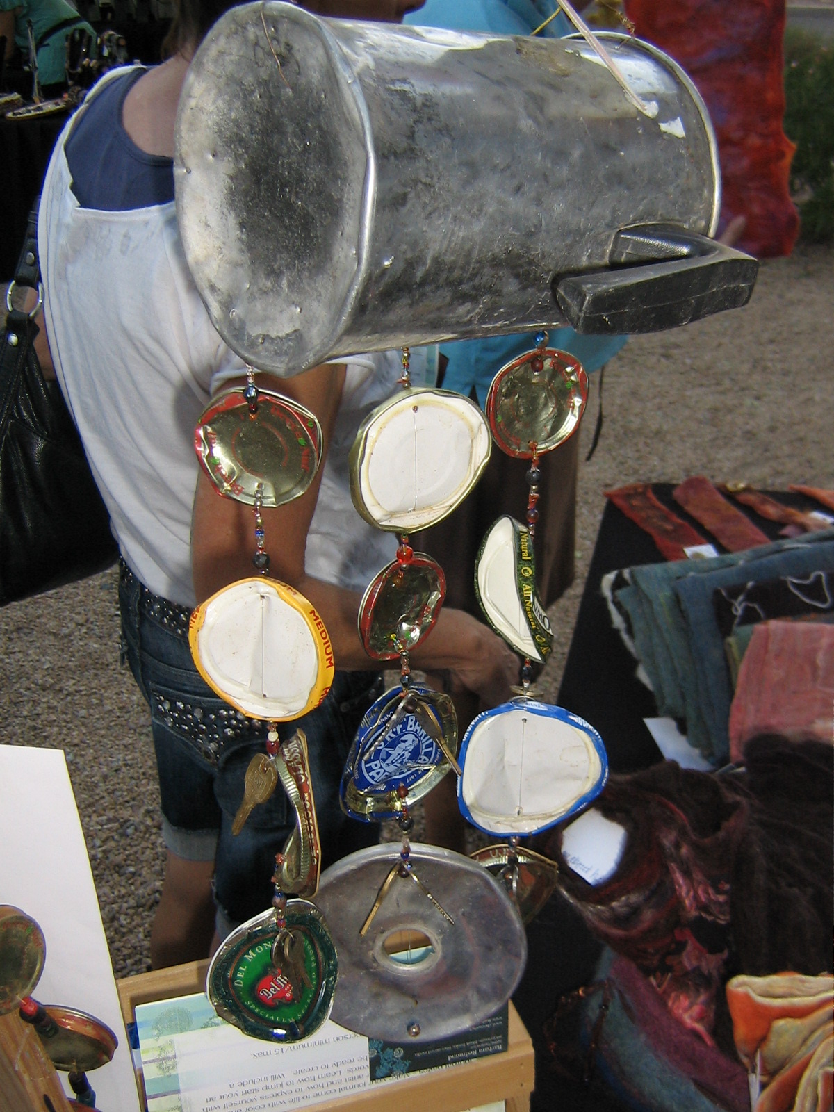 Yet, somehow she still finds time to create these incredible wind chimes out of items that most of us would consider junk. The way she combines the shapes and colors turns them into something beautiful. Here’s a closer look.